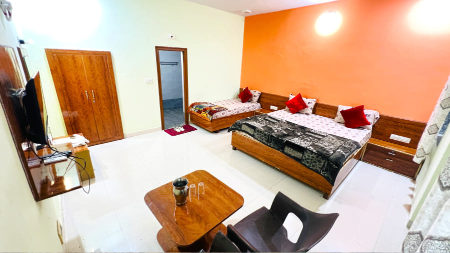 Experience spacious comfort in our Triple Bed Cottage, ideal for families or groups. Fully air-conditioned interiors ensure a cool and relaxing stay even in peak summers. Designed with cozy furnishings and modern amenities for a peaceful and enjoyable retreat.